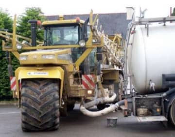 Le TERRAGATOR, utilisé pour l’épandage du TOPFLOW 150 , pulvérise le produit au sol grâce à des buses miroirs. La répartition est parfaite, sans perte au vent, le sol est comme recouvert d’une peinture blanche.