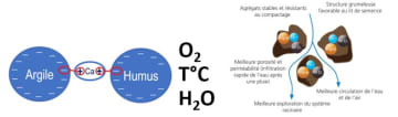 Solution respectueuse de la structure, en favorisant la floculation « argiles-humus », et grâce à l’épandage Terragator Le Ca2+ apporté par les amendements calciques, est chargé positivement, il permet d’associer l’argile et l’humus qui sont eux chargés négativement (voir illustration).
