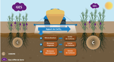 De plus, de récentes études montrent que l’apport de carbonate de calcium fin et soluble, grâce à son action sur le pH, entraine une diminution significative des Gaz à Effet de Serre en sols acides. Ces premiers résultats devront être validés et complétés, en attendant, tous les espoirs sont permis pour imaginer un air plus pur !