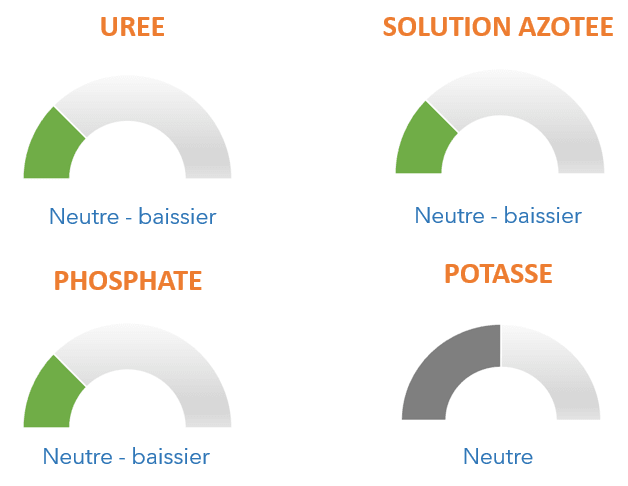 3- Potasse : Les prix mondiaux de la potasse tentent de se stabiliser, notamment au Brésil autour de 525 €/t CAF Brésil. Un retour plus conséquent de la demande est attendu pour réellement permettre aux cours de se consolider sur ces niveaux.