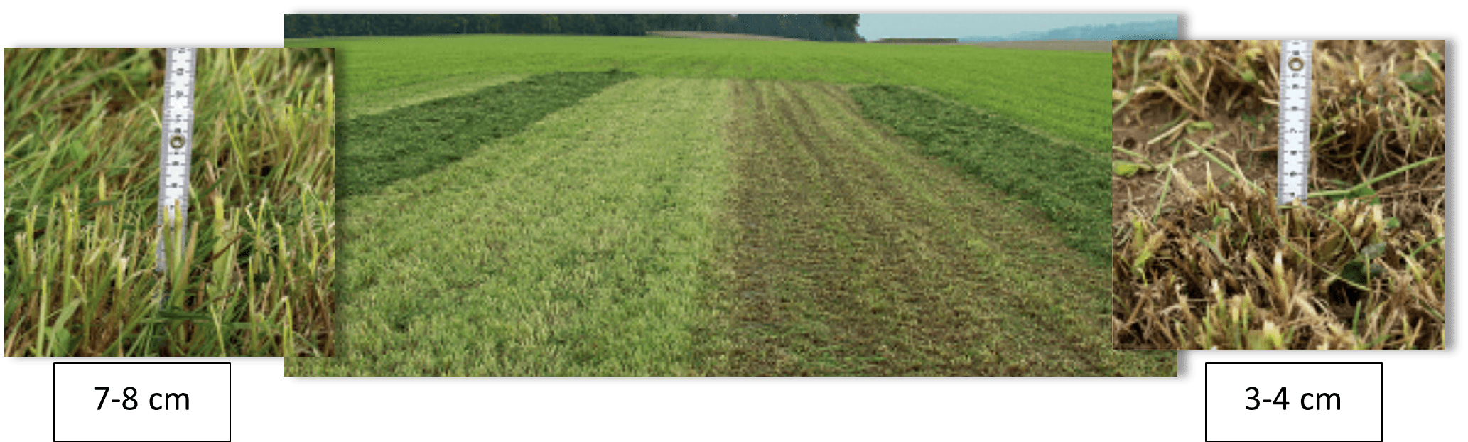 L’importance du respect de la hauteur de fauche La hauteur de coupe joue un rôle important sur la valeur nutritive du fourrage, elle conditionne la capacité des plantes à redémarrer après la fauche et le risque de souillures du fourrage par de la terre. A 7 cm la hauteur de coupe est idéale.